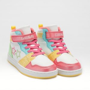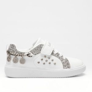 We are loving the NEW LK3410 Gioiello Bracelet trainers in both the White/Silver and White/Multi colour way. They feature a removable chain bracelet - the Silver with glittery peace sign charms, and the multicoloured with Rainbows and coloured beads. The bracelets can be worn on the trainers or as jewellery! When the bracelet is removed the shoes are still super cool and glitzy with chunky glitter panels and sparkly studs. The shoes are easy to fasten with an elastic lace and velcro strap, and have a super lightweight, slip resistant sole.